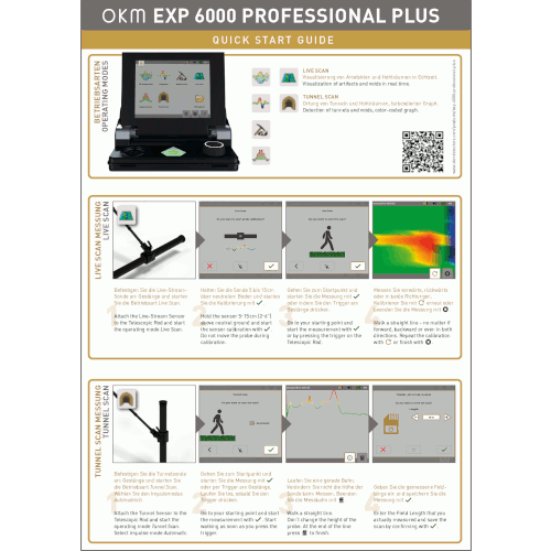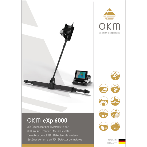 eXp 6000 zemin tarayıcı ve metal dedektörü, define avcıları, dedektörler, arkeologlar, altın arayıcıları ve madencilik endüstrisi için OKM 'un en iyi cihazlarından biridir. Bu dedektör tamamen kablosuzdur ve dokunmatik ekran veya dizüstü bilgisayar aracılığıyla kontrol edilebilir. Dünyanın 124 cm'ye kadar uzatılabilen yenilikçi OKM teleskopik probunu kullanan ilk 3D zemin tarayıcısıdır.